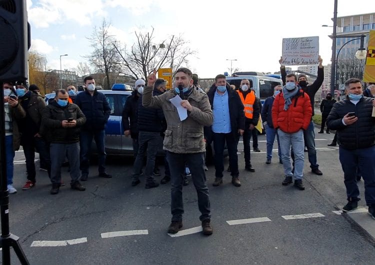 Murat K... redet bei der Taxi-Demo in Berlin am 19.2.2021 (Foto Axel Rühle)