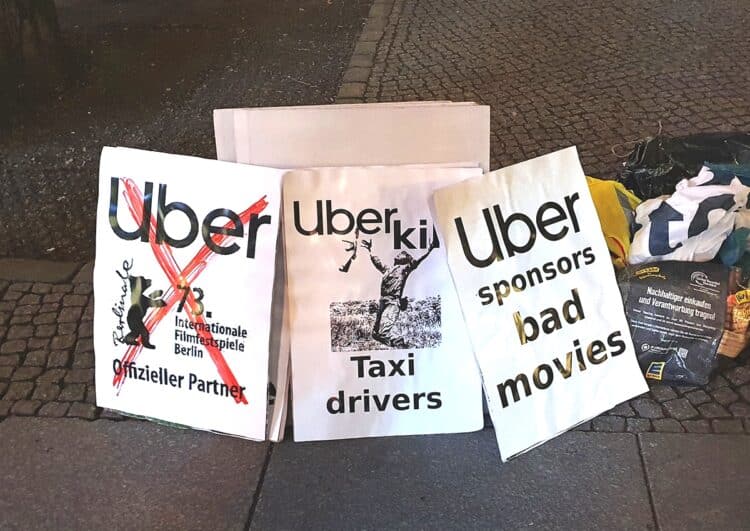 Protestplakate von Klaus Meier gegen Uber bei der Berlinale Foto Axel Rühle