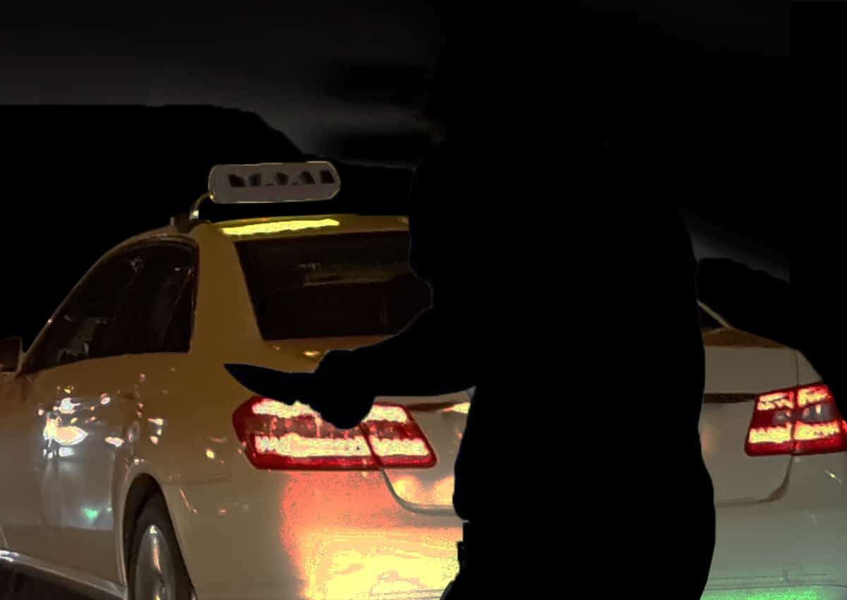 Taxi mit Messerstecher bei Nacht Collage Axel Rühle