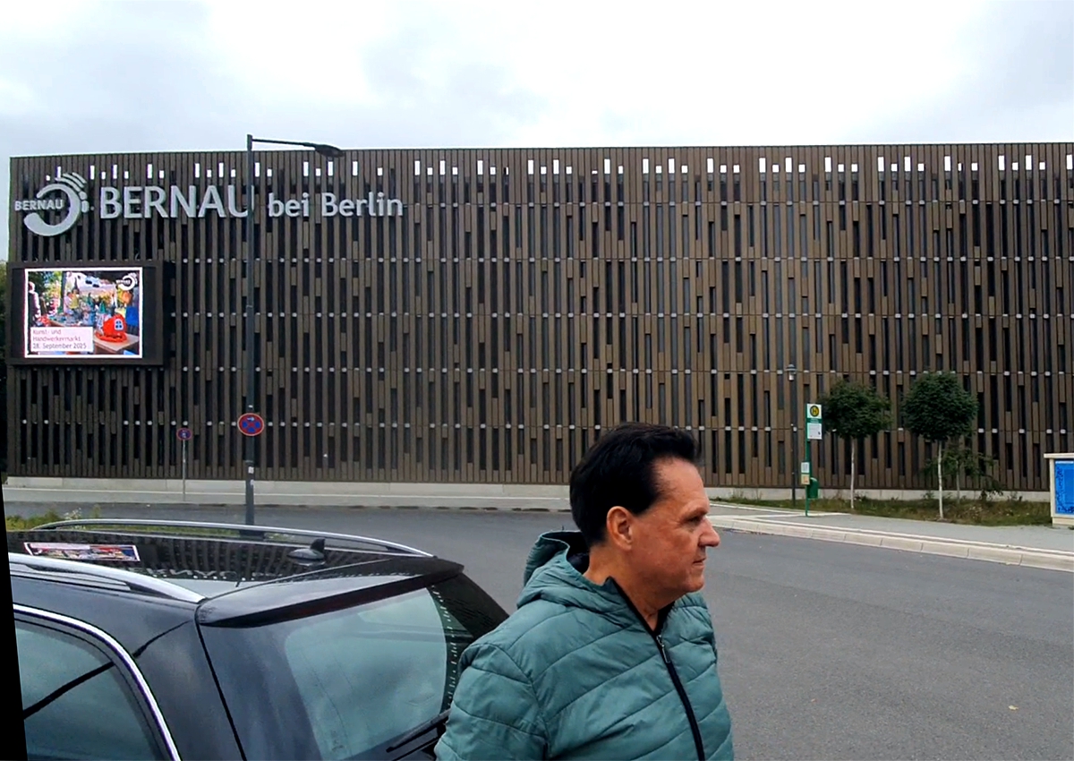 Also auf zum Firmenbüro, zu dem die im Parkhaus gemieteten Stellplätze gehören. Am Bahnhofsvorplatz ist nirgends ein Büro- oder Gewerbegebäude zu sehen, nur Wald und ein Umspannwerk. Bachmann steuert vor dem Parkhaus auf sein Auto zu, denn zum Firmensitz muss man fahren: aus der Bahnhofszufahrt an einem kleinen Gewerbegebiet vorbei, rechts in die Zepernicker Chaussee, einige hundert Meter geradeaus unter der A 11 hindurch bis zu einem weiteren Gewerbegebiet. Um die Ecke an der Krokusstraße, in 850 Metern Entfernung zum Parkhaus, steht das Bürogebäude, in dem das Mietwagenunternehmen seinen Firmensitz im 1. Stock hat. Laut Bachmann ist hier zu jeder Tages- und Nachtzeit jemand zugegen. An diesem Sonntag ist ein Fenster angekippt. Ob dahinter jemand arbeitet, ist nicht zu sehen. Vor dem Haus wiederum ein leerer Parkplatz, auf dem ein einziges Privatauto steht, aber weit und breit kein Mietwagen.