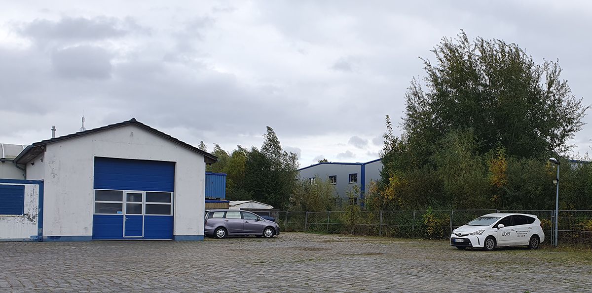 Die nächste Adresse liegt nahe der Autobahnabfahrt Bernau-Nord. Der Firmenhof in der Johann-Friedrich-A.-Borsig-Straße wirkt im Unterschied zur ersten Adresse nicht vergessen, sondern sieht nach Nutzung aus. Nur ist auch hier am Sonntag nichts los. Auf dem leeren Hofparkplatz ist immerhin ein weißer Uber-Toyota geparkt. Doch die Rolläden des Firmenbüros sind heruntergelassen. Auch hier: kein Mensch zu sehen, alle 40 Mietwagen bis auf einen ausgeflogen.