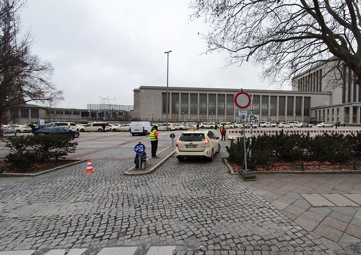 Impfzentrum Westend neue Einfahrt (Foto Axel Rühle)