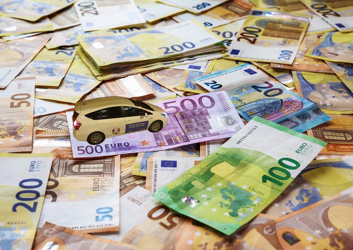 Euro-Banknoten Foto Pixabay (fotoblend) mit Uber-Mietwagen Foto Axel Rühle