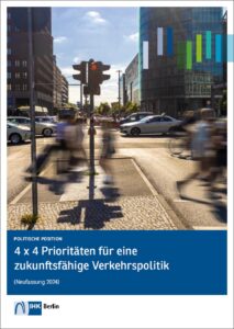 Tatsächlich beschäftigte sich die IHK Berlin im Februar und März intensiv mit der Thematik, steht man doch in der Verantwortung, der Politik Empfehlungen geben zu müssen, die die Interessen der Wirtschaft abbilden. Bereits am 24.09.2024 waren von der Vollversammlung der IHK Positionen zur Berliner Verkehrspolitik beschlossen worden, die in einem Papier mit dem Titel „4×4 Prioritäten für eine zukunftsfähige Verkehrspolitik“ beschrieben sind. Das 46-seitige Papier besteht aus vier Hauptkapiteln.
