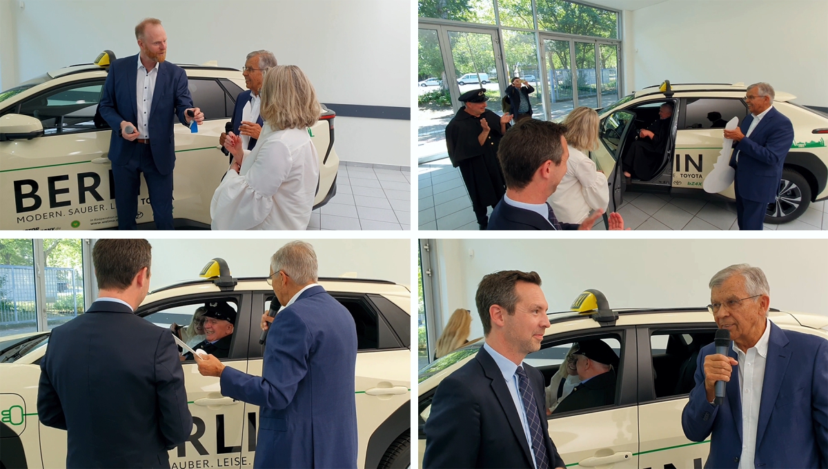 Die feierliche Übergabe des E-Taxis, das die „Innung“ unter Inanspruchnahme der WELMO-Förderung gekauft hatte, und das in einem Nebenraum des Autohauses bereitstand, wurde zu einem kleinen Highlight der Veranstaltung. „Wir haben die Anwesenheit von Senatorin Bonde und Staatssekretär Dr. Fischer genutzt, um im Namen des Gewerbes Dankeschön zu sagen für die Unterstützung bei der Elektrifizierung der Flotten in Berlin“, so Nadolski gegenüber Taxi Times. ar