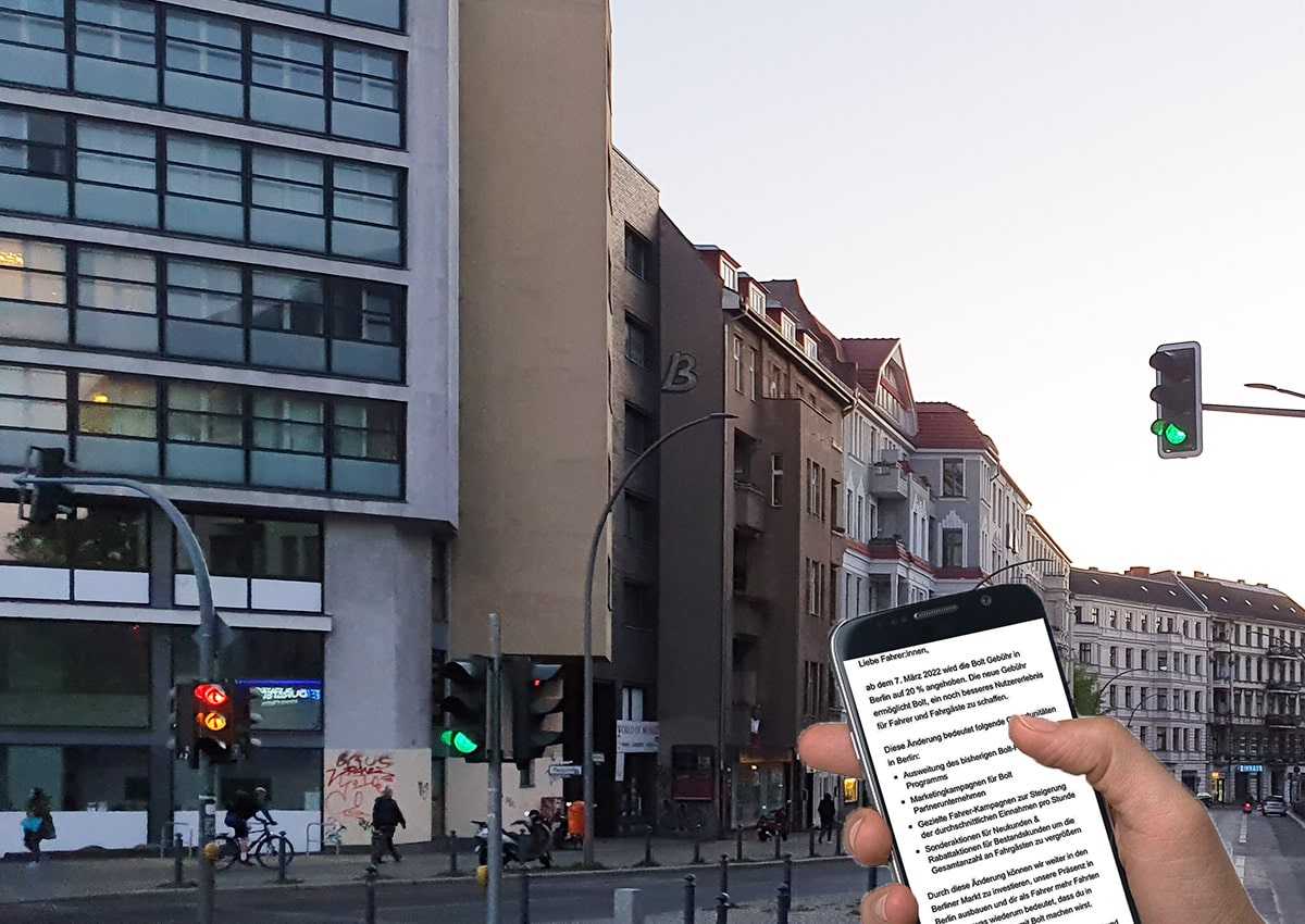 Hand mit Bolt-Screen-Smartphone Fotomontage Axel Rühle