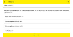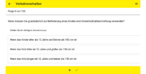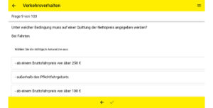 Weiter erläutert der BVTM: „Die App ‚TaxiTrainer’ simuliert auch die realistische Prüfung. Innerhalb von 60 Minuten müssen 16 Fragen beantwortet werden – acht Fragen kommen dabei aus dem Bereich Verkehrsverhalten, jeweils vier aus den anderen beiden Kategorien Überfallsicherheit sowie Inklusion. Der Einstieg kann dabei noch recht einfach anmuten. So lautet eine Frage: Ihr Fahrgast hat es besonders eilig, wie verhalten Sie sich? Dass die zulässige Höchstgeschwindigkeit nicht überschritten werden darf, ist relativ logisch. Kniffliger wird es dann schon, wo ein Hund befördert werden darf. (Spoiler: Nur im Fußraum und nicht auf den Sitzen oder im Kofferraum). Am Ende kommt das Ergebnis – und wenn weniger als zwölf Fragen richtig beantwortet wurden, kann man in der App neu starten.“
