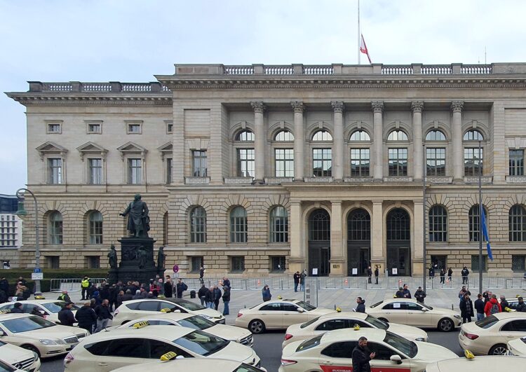 Mehrere hundert Taxis standen Montagvormittag vor dem Abgeordnetenhaus von Berlin, dem Landesparlament im historischen Gebäude des einstigen Preußischen Landtags in der Niederkirchnerstraße nahe dem Potsdamer Platz. Aufgerufen hatte Michael Klewer, Taxiunternehmer, IHK-Vertreter und Mitglied einer lose organisierten Gruppe von Taxiunternehmern, die in jüngster Zeit auch mit Protesten gegen die Umgestaltung der Infrastruktur am Berliner Hauptbahnhof für Aufsehen gesorgt hatte. Diesmal war der Veranstaltungsort voll von Personen und hellelfenbeinfarbenen Autos, gut bewacht von etlichen Polizeibeamten.