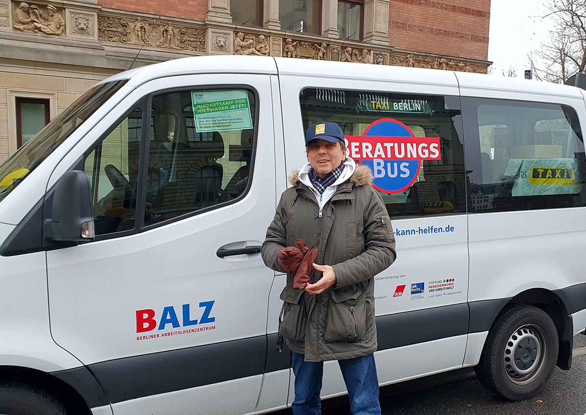 Stefan Kamarys mit Beratungs-Bus FotoAxel Rühle