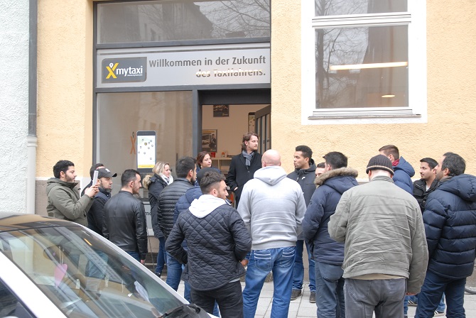 Von kurz nach zwei bis viertel vor drei nachmittags ging in der Münchner Fäustlestraße nichts mehr: 23 Taxis blockierten die Einbahnstraße vor dem Münchner Büro von mytaxi. Grund für den Ärger war eine Änderung in der Auftragsvermittlung. Fahrer und Unternehmer beschwerten sich, dass sie bei der neuen Vergabepraxis zu kurz kämen.