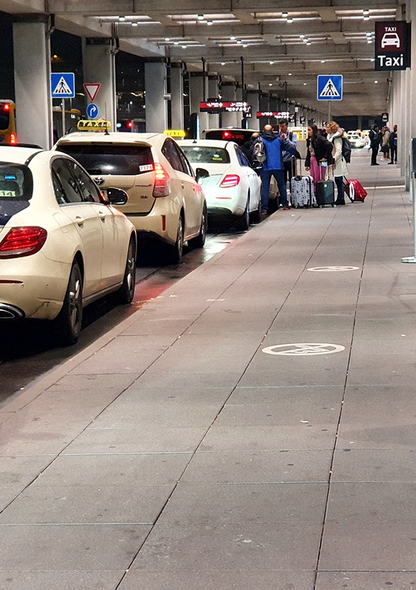 Das Beitragsbild zeigt einen Taxistand am Flughafen Berlin-Brandenburg. Foto: Axel Rühle
