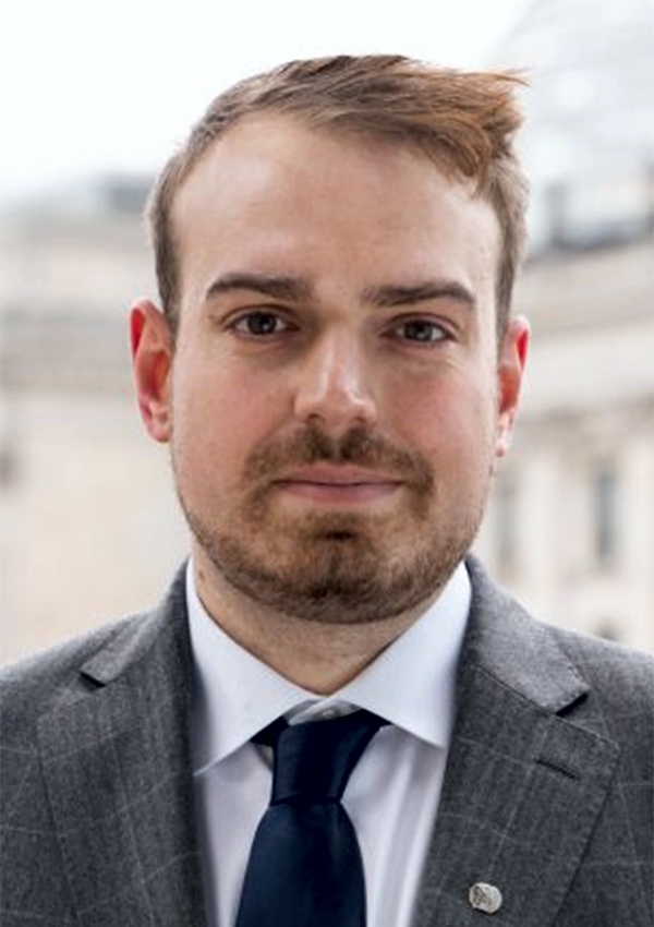 Björn Simon (*18.5.1981 in Offenbach am Main) aus Obertshausen bei Darmstadt ist Politikwissenschaftler und Volkswirt und seit 2004 CDU-Mitglied. Seit er 2017 per Direktmandat erstmals in den Bundestag einzog, war und ist er in allen drei Legislaturperioden ordentliches Mitglied im Verkehrsausschuss, neuerdings als Obmann der Unionsfraktion und deren verkehrspolitischer Sprecher. Er mahnt eine Ertüchtigung der Verkehrsinfrastruktur an, um im globalen Wettbewerb bestehen zu können.
