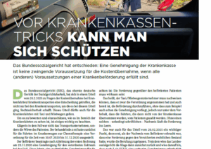 Das oberste Sozialgericht hat im Februar dieses Jahres entschieden, dass die Genehmigung der Krankenkasse keine zwingende Voraussetzung für deren Kostenübernahme sein darf. Allerdings ist es alternativ notwendig, dass alle anderen Voraussetzungen penibel beachtet und eingehalten werden, was durchaus eine Hürde darstellen kann.
