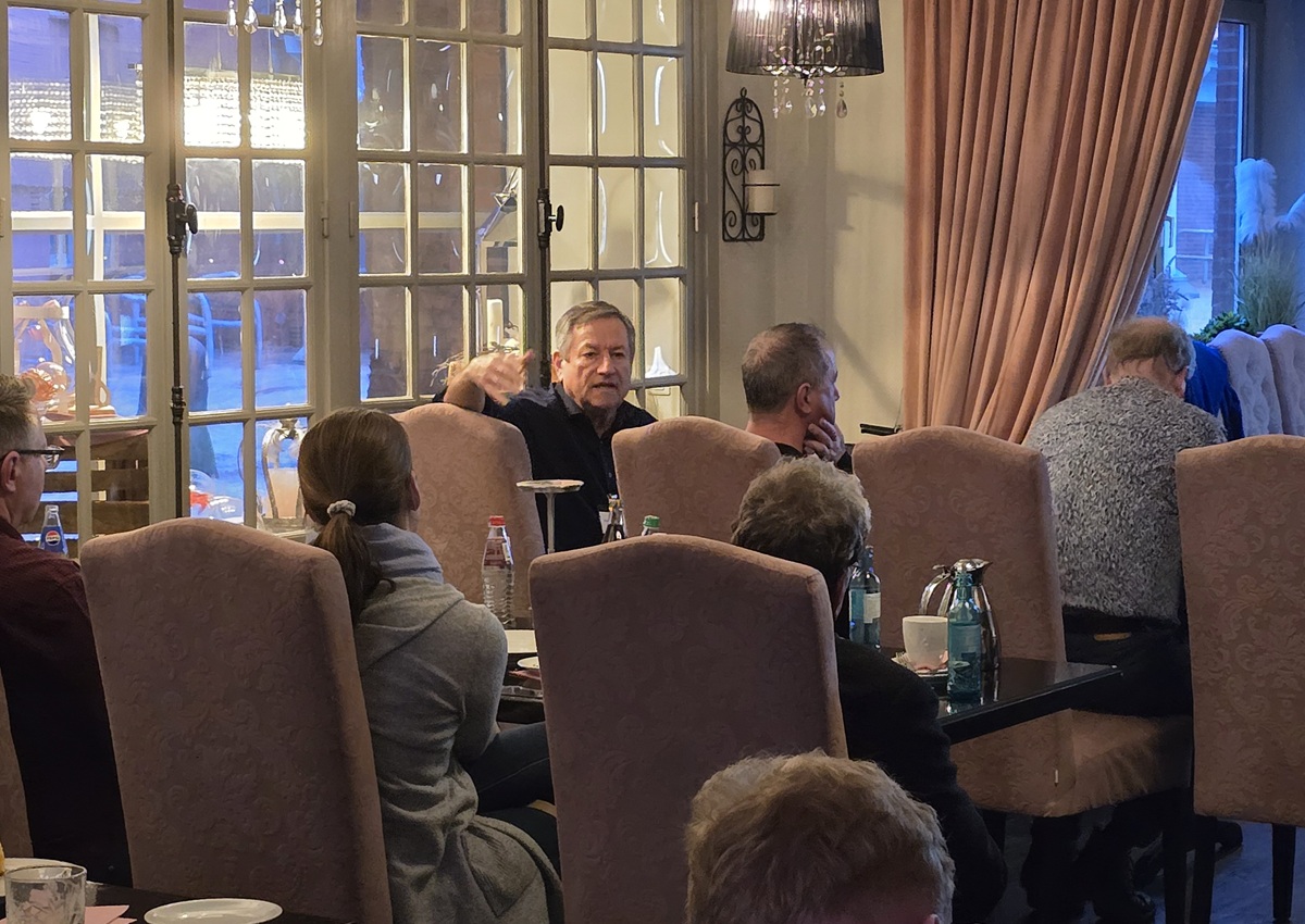 Dirk Ritter (rechts) in Glückstadt 2026 beim Diskutieren über die Zukunftschancen von MWU; Foto Taxi Times