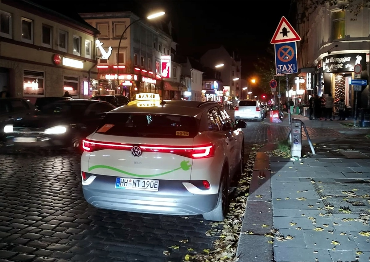 Hamburg E-Taxi am Halteplatz bei Nacht Foto Simi
