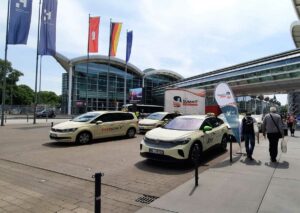 Auch vor der Tür sollte sich das Projekt Zukunftstaxi entsprechend präsentieren. Für die Zeit des UITP wurde der Taxistand Karolinenstraße / Messe Eingang Mitte (der sich auf privatem Gelände befindet) so umfunktioniert, dass der linke Streifen nur vollelektrischen E-Taxis und Taxis mit Brennstoffzelle vorbehalten sein sollte. Auf dem zweiten Fahrstreifen waren dann Taxis mit Verbrenner willkommen. Gekennzeichnet wurde dies mit einer speziellen Beschilderung. Die Repräsentation des Vorzeigeprojekts hatte dann aber in der Praxis mit einigen Problemen zu kämpfen. Die Messebesucher mussten damit rechnen, dass einige Taxifahrer die Vorgabe ignorierten und sich mit ihrem Verbrenner-Taxi auf der E-Taxi-Spur bereithielten. Schade, dass gerade in diesem Zusammenhang, wo das Taxigewerbe versucht, sich einen Platz für die Zukunft zu sichern, kein Respekt gegenüber den Kollegen gezollt wurde.