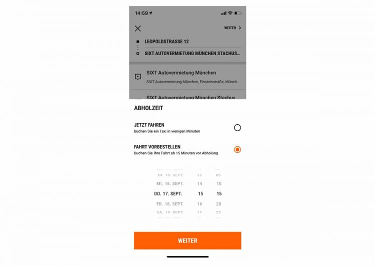 Als Mindestvorausbuchungszeit sind 15 Minuten definiert. Neben der Appbestellung ist auch eine Fahrtbuchung über die Sixt-Website möglich.