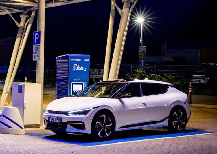 Beitragsfoto: Kia EV 6 an einer Aral pulse Schnellladesäule. Foto: Kia