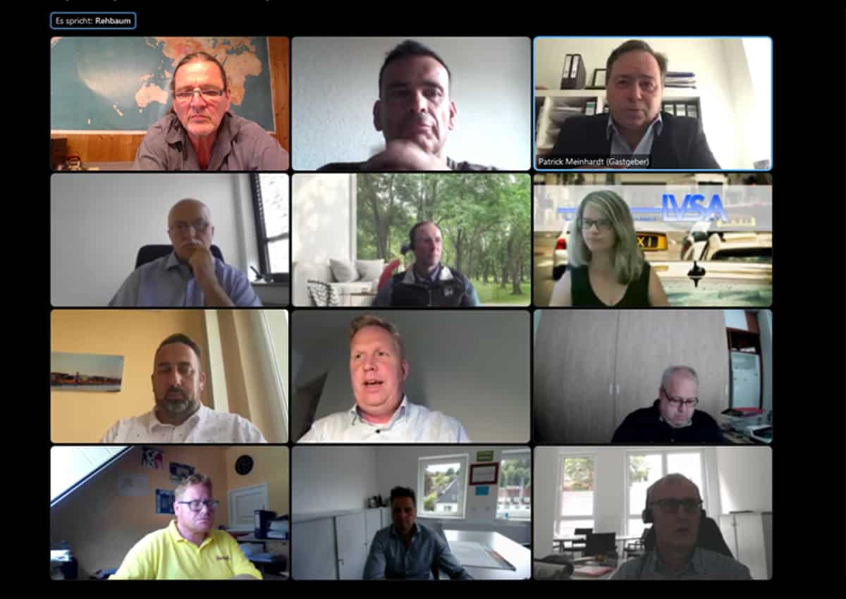 Screenshot aus der Videokonferenz TMVDirekt; Henning Rehbaum ist der Herr mit den blonden Haaren in der mittleren Reihe. Screenshot: Remmer Witte