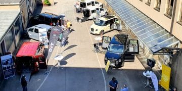 Alexander Wiedemann, Verkaufsleitung PKW Neufahrzeug AirportCenter, begrüßte in seiner Eröffnungsansprache auch einige Gewerbepartner, die auf der Veranstaltung präsent waren, darunter Stefan Willjes vom Auto-Umrüster AMF Bruns, Familie Jordanov vom Taxi-Zentrum Brandenburg an der Havel, Versicherungsmakler Jürgen Simon von FVI24, Mustafa Ucan von Maximum Gutachten und Timo Fahrendholz von FWF Folierung & Werbedesign. „Wir begleiten Sie kompetent bei der Umrüstung durch einen Aufbauhersteller und beraten Sie umfassend zur optimalen Nutzung Ihres Fahrzeuges als Taxi im Straßenpersonenverkehr“, sagte er und fügte anschließend vielversprechend hinzu: „Wir sind wieder vollumfänglich für Euch da.“
