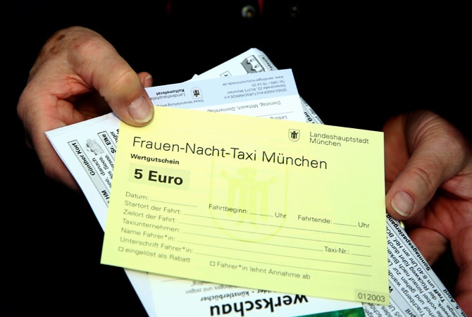 Zunächst für ein Jahr will die Stadt München Erfahrungen mit dem Frauen-Nacht-Taxi Gutschein sammeln, bevor über eine dauerhafte Einführung des Angebots nachgedacht wird. Seit dem 1. März dürfen sich Frauen ab 16 Jahren maximal drei Gutscheine pro Tag in den Bürgerbüros den Sozialbürgerhäusern oder in der Gleichstellungsstelle und der Stadtinformation im Rathaus abholen.