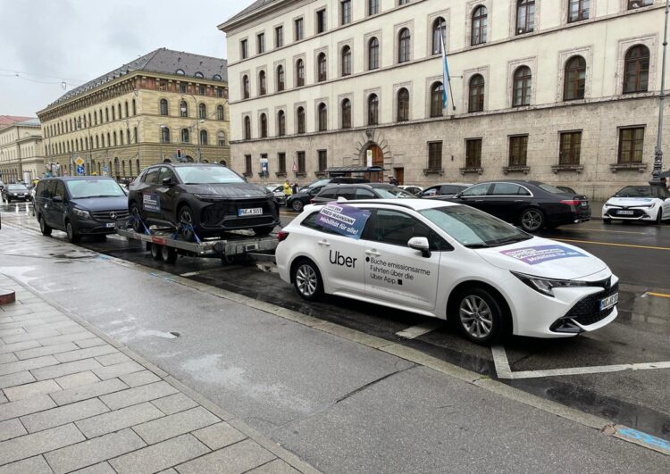 Beitragsfoto: Münchner Uber-Fahrzeuge bei einer Demonstration gegen die Einführung von Mindestbeförderungsentgelten. Die teilnehmenden Fahrer waren teilweise gekauft und wussten gar nicht, dass sie eigentlich gegen ihre eigenen Interessen demonstrieren.
