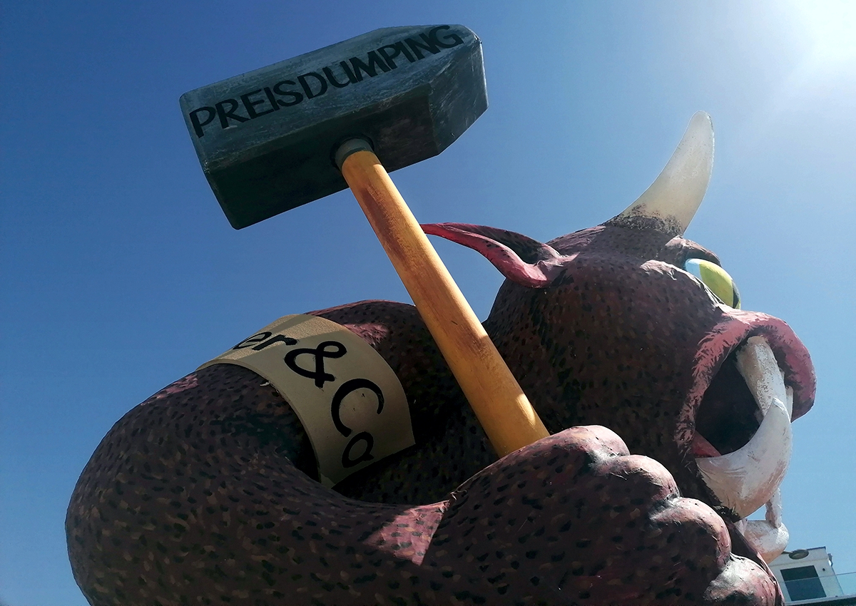 Die ursprünglich geplante Auftaktkundgebung an der Deutzer Werft musste aufgrund der Witterungsbedingungen und der großen Hitze kurzfristig abgesagt werden. Dennoch nutzte Aleksandar Dragicevic, der Vorsitzende und Pressesprecher der Taxi Ruf Köln eG, die Gelegenheit, sich gegenüber den Medien zu äußern. Vor der Kulisse einer großen, kunstvoll gestalteten Figur („de kölsche Jeck“), die auf dem Dach eines Leichenwagen-ähnlichen Fahrzeugs befestigt war und das Thema Preisdumping visualisierte, beantwortete er die Fragen der anwesenden Vertreter von Radio und Fernsehen. So konnten die Positionen des Taxigewerbes trotz der Widrigkeiten klar kommuniziert werden.