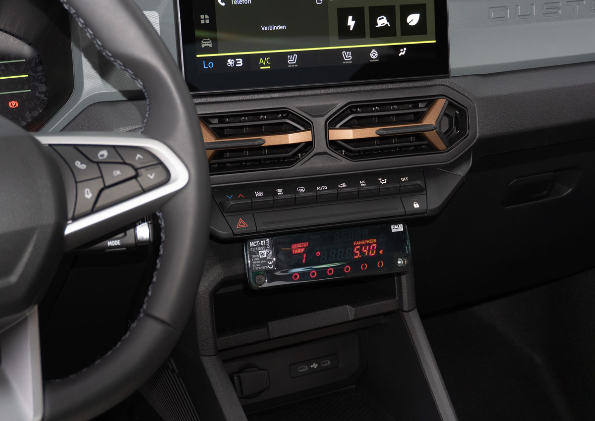 Beim Deutschen Taxi und Mietwagentag in Erfurt war das neue Dacia-SUV bereits im Taxi-Gewand zu sehen. Mitgebracht hatte den Wagen Sören Brandmähl-Kraus vom „Dacia Autokraus Erlangen“ (Achtung Wortspiel). Mit dem Wagen drückt der Händler Knöpfe – sowohl beim preisbewussten Taxiunternehmen als auch bei denjenigen, denen der Look eines Fahrzeugs für die Kaufentscheidung ausschlaggebend ist.
