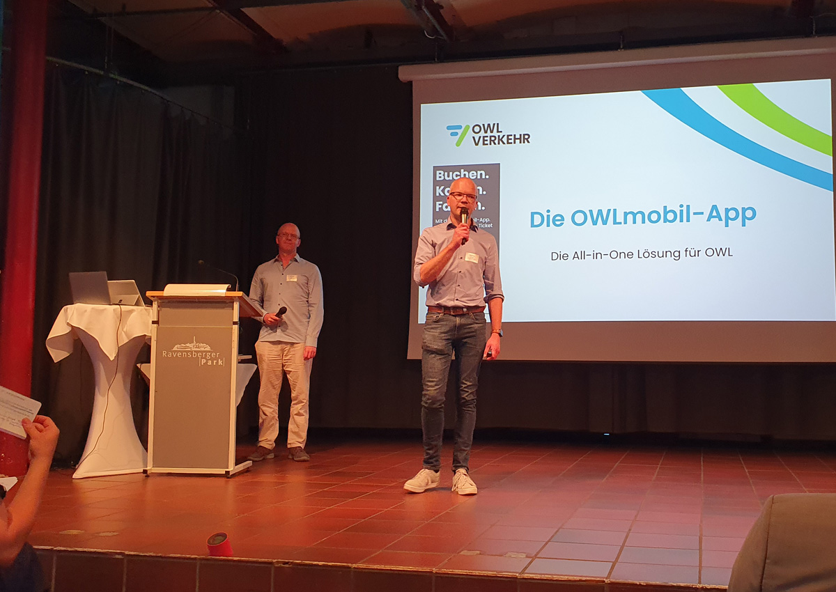 Für die Anbindung an die App konnten dann in der Folge Stefan List und Sebastian Vogts von OWL Verkehr Rede und Antwort stehen. Die OWL Verkehr Servicegesellschaft wurde im Jahr 2004 von den Verkehrsunternehmen und Aufgabenträgern in den Kreisen Minden-Lübbecke, Herford, Lippe, Gütersloh und der Stadt Bielefeld gegründet. Bei der OWL Verkehr GmbH sind heute über 25 Bus-, Stadtbahn- und Zugunternehmen sowie Aufgabenträger zusammengeschlossen, die alle Gesellschafter der OWL Verkehr GmbH sind. Die OWL Verkehr ist beispielsweise auch für das Ticketing, den Fahrplan und die telefonische Buchung des ‘flex taxi’ verantwortlich. Insbesondere ist aber auch die Einbindung des ‚flex taxi‘ in die App ein wichtiger Aufgabenbereich. Tatsächlich ist die gute Nachricht, dass die Integration vom Flex Taxi in anderen Städten und Gemeinden mittlerweile keine unlösbare Aufgabe ist. Vielmehr, so hieß es im Vortrag, sei das System stabil und man könne sich durchaus vorstellen, die App auch anderen Verkehrsverbunden zur Verfügung zu stellen.
