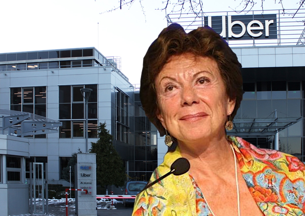 Neelie Kroes + Uber-Gebäude Collage Foto World Economic Forum und Rumen Milkow