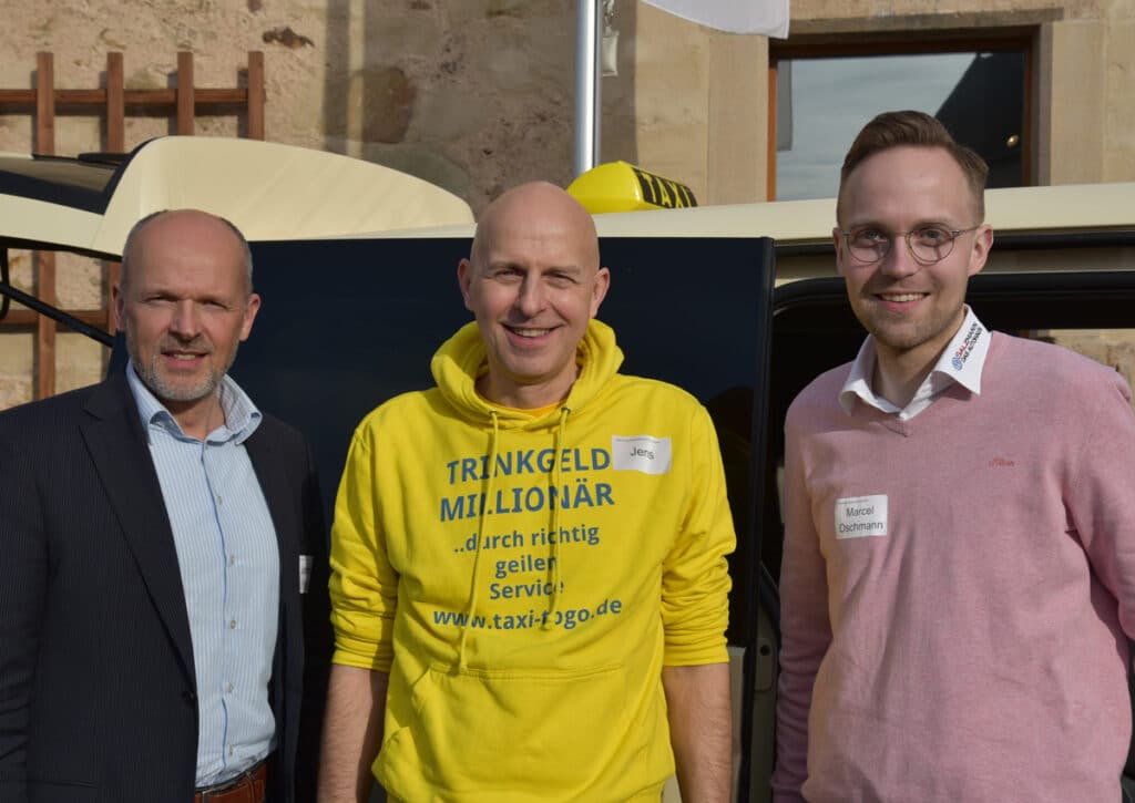 Vor Ort waren Marcel Oschmann vom Autohaus Salzmann mit Sitz in Bad Hersfeld und der für VW-Taxis aus der Nutzfahrzeugsparte verantwortliche Joachim Flämig, Robert Abel und Dieter Janoth von FMS sowie Alexander Brandenstein von Talex, der Firma hinter der Software „Taxi.de“.