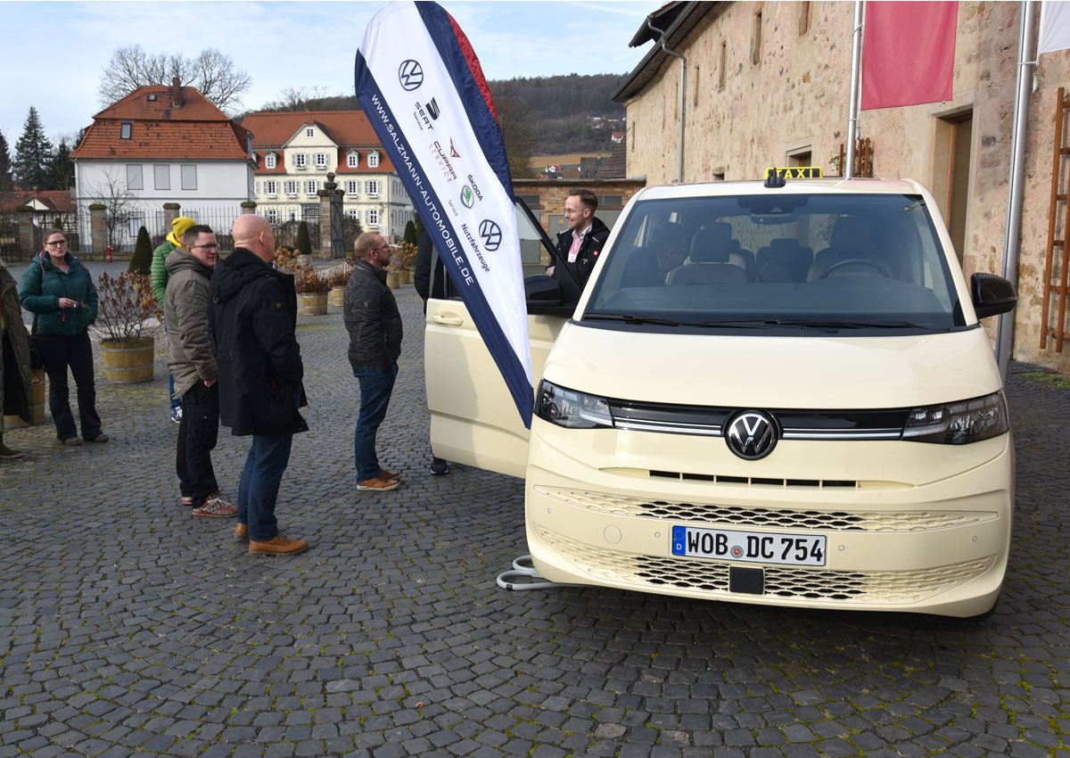 Vor Ort waren Marcel Oschmann vom Autohaus Salzmann mit Sitz in Bad Hersfeld und der für VW-Taxis aus der Nutzfahrzeugsparte verantwortliche Joachim Flämig, Robert Abel und Dieter Janoth von FMS sowie Alexander Brandenstein von Talex, der Firma hinter der Software „Taxi.de“.