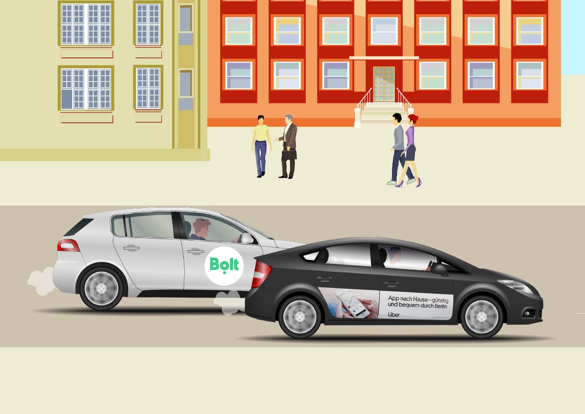 Uber und Bolt – Grafik Jerome Kirschkowski