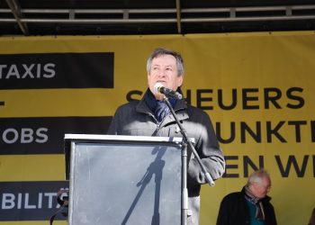 Dün Münih'teki Taksi Protestosunda BZP Genel Başkan Yardımcısı Hermann Waldner ve Yönetim Kurulu üyesi Frank Kuhle, siyaset üzerindeki baskıyı daha ...