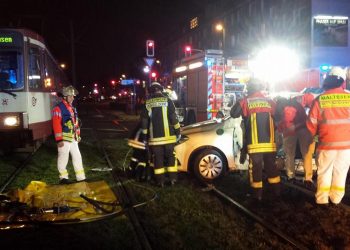Beim Zusammenstoß zwischen einer Straßenbahn und einem Taxi sind in Düsseldorf gestern Abend zwei Menschen verletzt worden. Laut dem Einsatzbericht ...