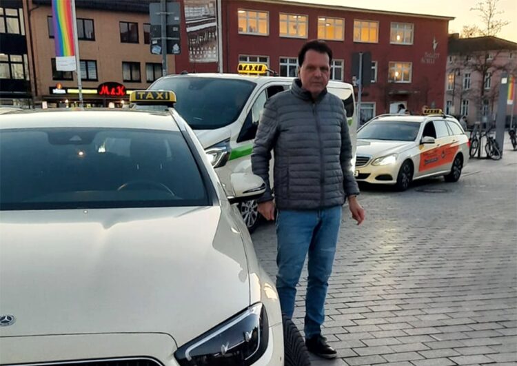 Beitragsfoto: Bernd Bachmann mit seinem Taxi (Foto: privat)