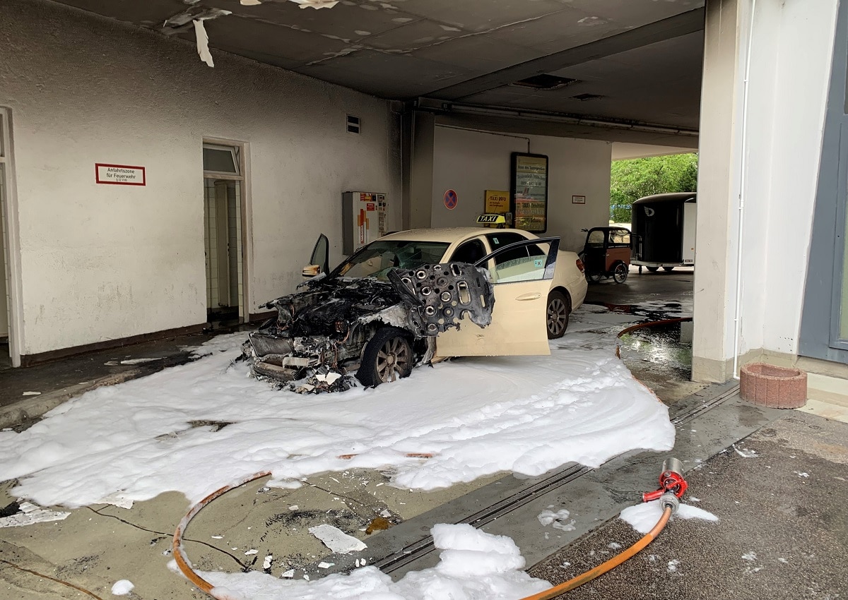 Taxi brennt in der Engelhardstraße am 29.5.22; Foto: Taxi München eG