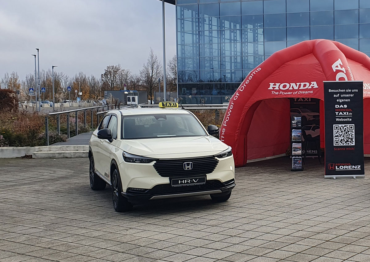 Mit gleich zwei bislang völlig unbekannten Taxis war Mirko Vohlde von Honda Lorenz aus Glauchau nach Erfurt angereist. Die beiden Honda-SUVs CR-V und HR-V konnten auf dem Vorplatz der Messe von den Teilnehmern begutachtet werden.