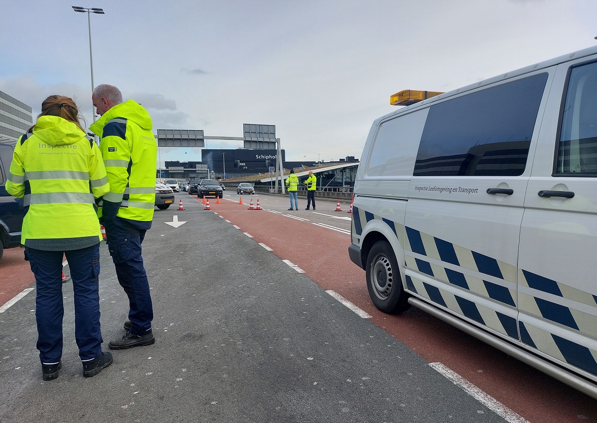 Eine Überwachungseinheit der ILT kontrolliert Taxis auf dem Flughafen Schiphol; Foto: ILT;