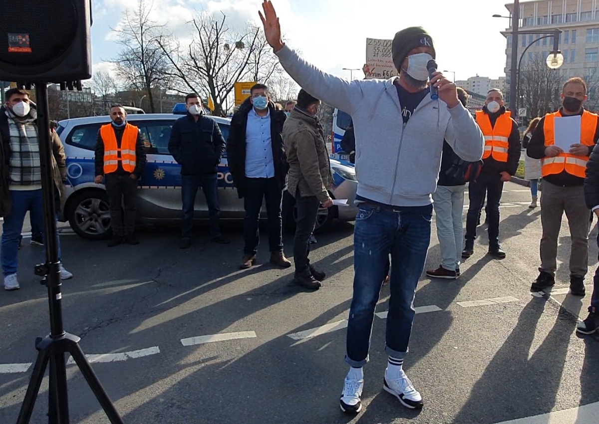 Timuçin Campınar redet bei der Taxi-Demo in Berlin am 19.2.2021 (Foto Axel Rühle)