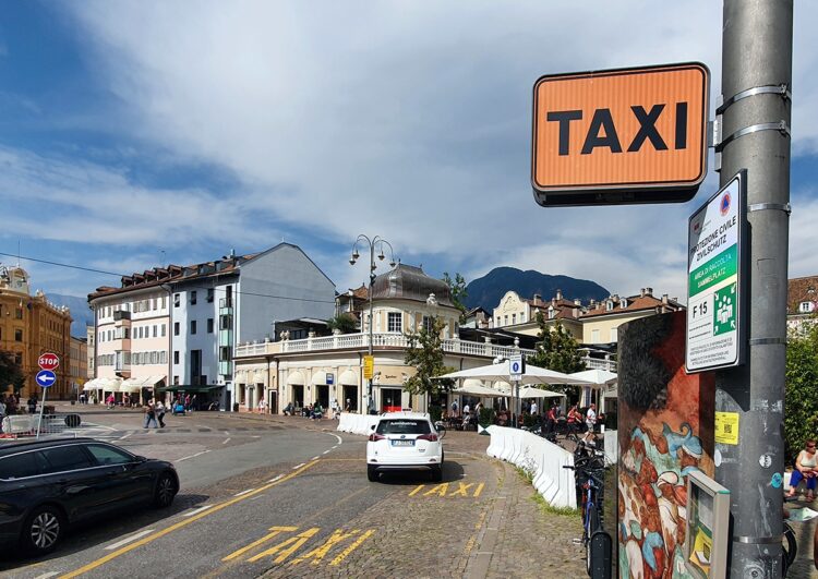 Beitragsbild: Taxihalteplatz in der Südtiroler Landeshauptstadt Bozen; Foto: Axel Rühle