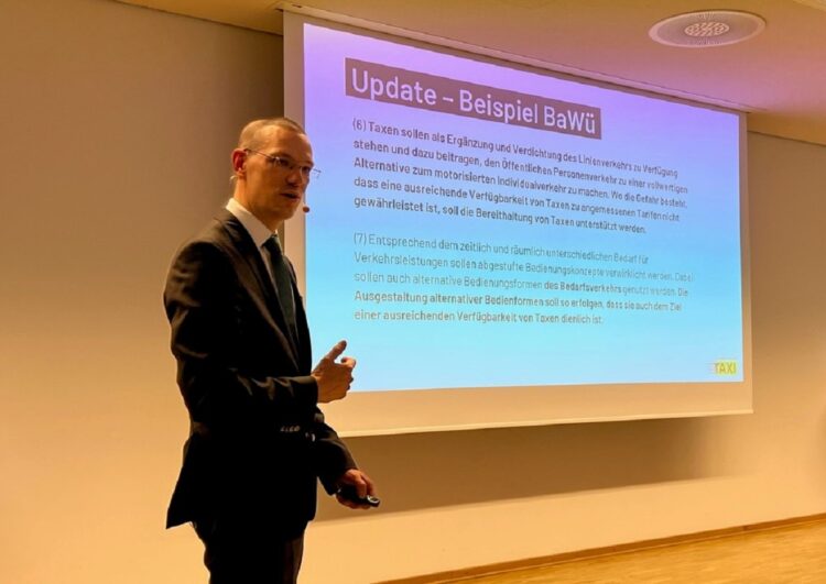 Beitragsfoto: Michael Oppermann vom Bundesverband Taxi präsentiert das Konzept für die Regionalisierungsmittel für Taxis. Foto BVTM