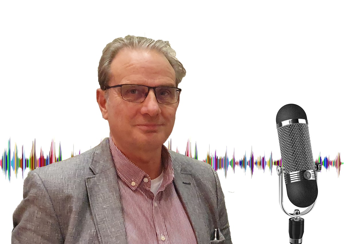 Thomas Lohse mit Mikrofon Foto+Collage Axel Rühle