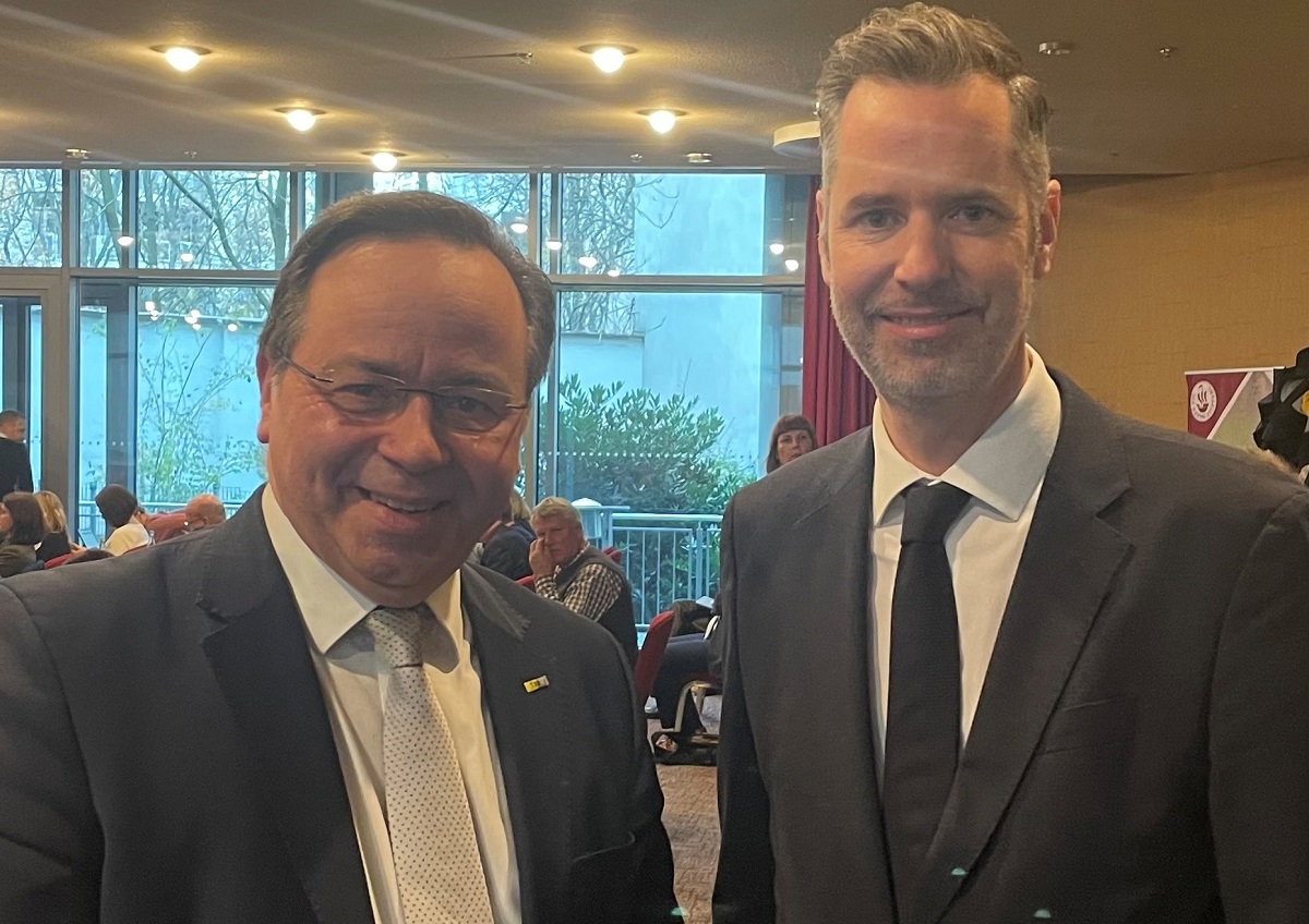 Hauptgeschäftsführer des TMV, Patrick Meinhardt (li.) im Austausch mit dem Fraktionsvorsitzenden der FDP, Christian Dürr; Foto: TMV