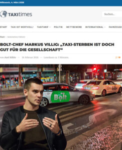 Mit teils provokativen Aussagen in einem Zeitungsinterview hatte der Gründer des Fahrdienstes Bolt für heftige Empörung in der Taxi- und Mietwagenbranche gesorgt. Der TMV hat Villigs Aussagen jetzt sachlich widerlegt. Auch die Kommentare der Taxi-Times-Leser beweisen mehr Realitätssinn, als ihn Villig an den Tag legt.