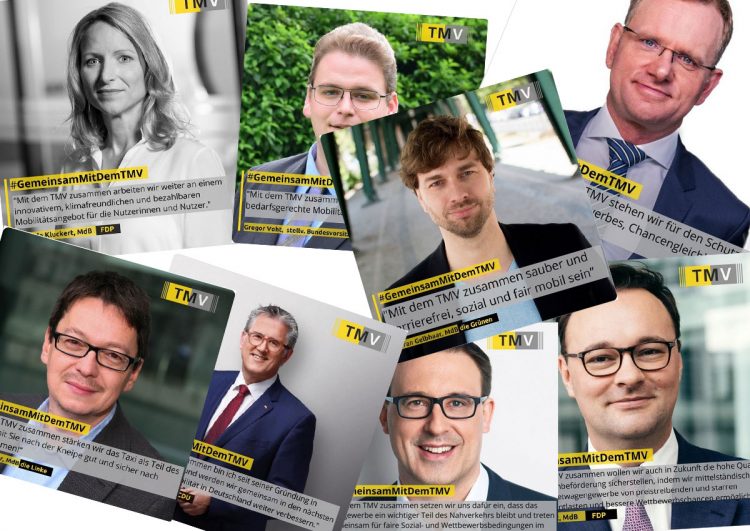 Der zu Jahresbeginn neu gegründete Taxi- und Mietwagenverband TMV hat auf seinem Twitter-Account die Statements einiger Bundestagspolitiker veröffentlicht, in denen diese die Zusammenarbeit mit dem Verband und somit mit dem Taxigewerbe signalisieren. Die Auswahl der Politiker*Innen ist allerdings kritikwürdig.
