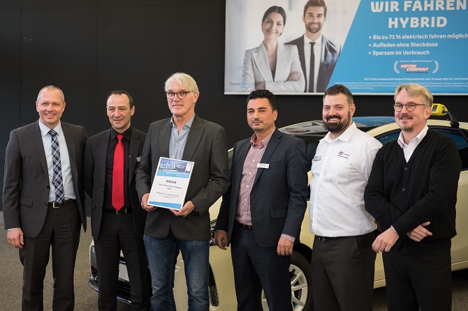 Karlo Reckert, Metrocab Geschäftsführer, hat Ende November die Auszeichnung sowie einen DVD-Player mit zwei Bildschirmen im Rahmen einer kleinen Feier im Berliner Toyota Autohaus M.C.F. Motor Company entgegengenommen.