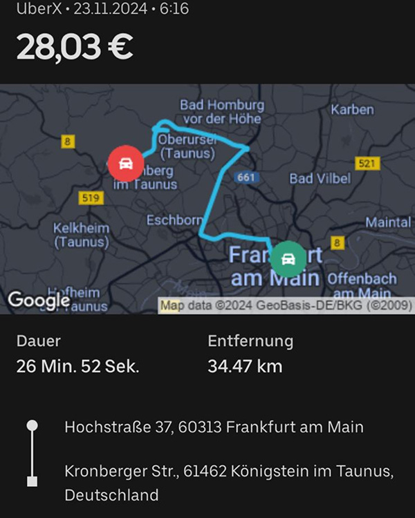 Uber-Screenshot Frankfurt Königstein 28 Euro