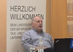 Linz nahm bei solchen Überlegungen seinen bayerischen Landesverband aus dem Spiel. Sein LV Bayern übernehme eine andere Rolle bei solchen Markteintritten: Gespräche mit der Politik und den ranghohen Behördenmitarbeitern suchen und darauf hoffen, dass die Behörden dann auch willens sind, ihre gesetzlichen und rechtlichen Möglichkeiten auszuschöpfen. In Regensburg, so berichtet Linz, sei er vor gut einem Jahr auf eine regelrechte Verweigerungshaltung der Behörde gestoßen. In Ulm, wo Linz am Vormittag sowohl die Ulmer als auch die Neu-Ulmer Behördenvertreter besucht hatte, sei das Gespräch positiver verlaufen. „Da habe ich heute einen komplett anderen Eindruck gewonnen“, lobte Linz die offene Haltung der Behörde. Man habe sich dort auch offen gezeigt, Festpreise für Taxis innerhalb eines Tarifkorridors und Mindestbeförderungsentgelte (MBE) für Mietwagen einzuführen.