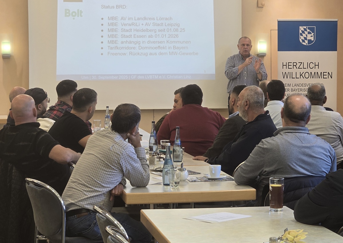 Anschließend fasste Linz zusammen, wo es außer im Landkreis Lörrach sonst noch Mindesttarife gibt. In Leipzig waren sie bereits eingeführt, dann aber wieder auf Eis gelegt. In Heidelberg gelten sie seit 1. August 2025, doch noch halten sich die Mietwagen nicht daran. Beide Seiten bereiten sich derzeit auf die in Kürze anstehende gerichtliche Auseinandersetzung vor. In Essen hat der Stadtrat Ende September beschlossen, MBE zum 1. Januar 2026 einzuführen. Beide Städte berufen sich bei ihrer Begründung auf ein jeweiliges wirtschaftliches Gutachten zur Marktsituation. Ein solches Gutachten gäbe es wohl in Kürze auch für die fränkische Städteachse Nürnberg, Fürth, Erlangen und Schwabach. Hier rechnet Linz damit, dass im Frühjahr Mindesttarife eingeführt werden. In München wurde ein eigentlich geplantes MBE kurz vor der Ziellinie ausgebremst.
